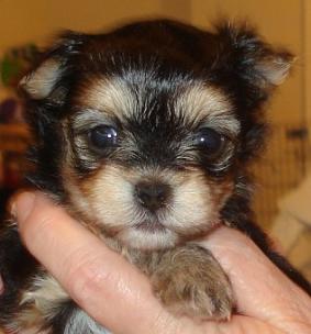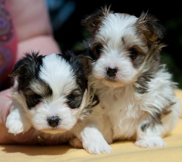 Parti colored Morkies at 3 weeks old